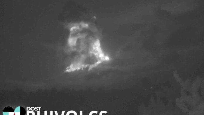 MANILA, Philippines (AP) — A volcano belched a plume of ash and steam into the night sky in the central Philippines in a powerful explosion that sent more than 700 people fleeing to evacuation camps.