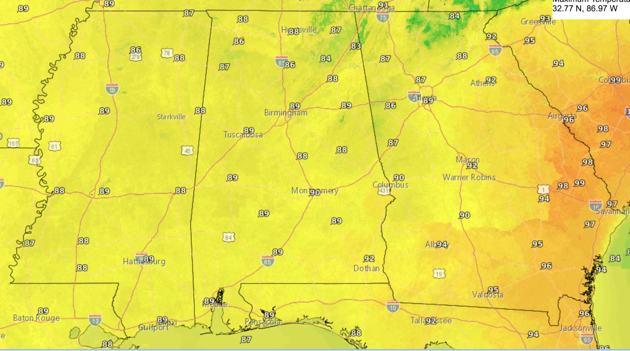 * Tuscaloosa: 97 degrees (record 102 in 1954)