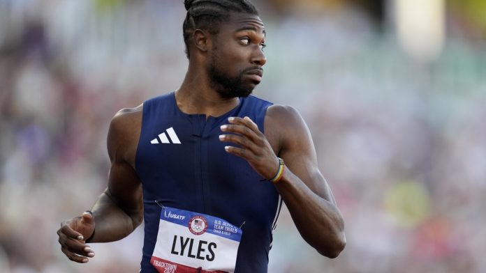 EUGENE, Ore. (AP) — Noah Lyles kept his hopes for the sprint double at the Olympics alive Saturday night, coming from behind to win the 200 meters at the U.S. track trials in 19.53 seconds, the fastest time in the world this year.